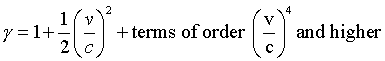 For small velocities, the terms of order 4 and greater are extremely tiny compared