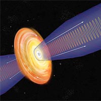 ![]() Printed from: PhysLink.com; https://www.physlink.com/news/Index.cfm?ID=616 Original publication date: Tuesday July 7, 2009. VLBA Locates Origin of Superenergetic Bursts Near Giant Black Hole